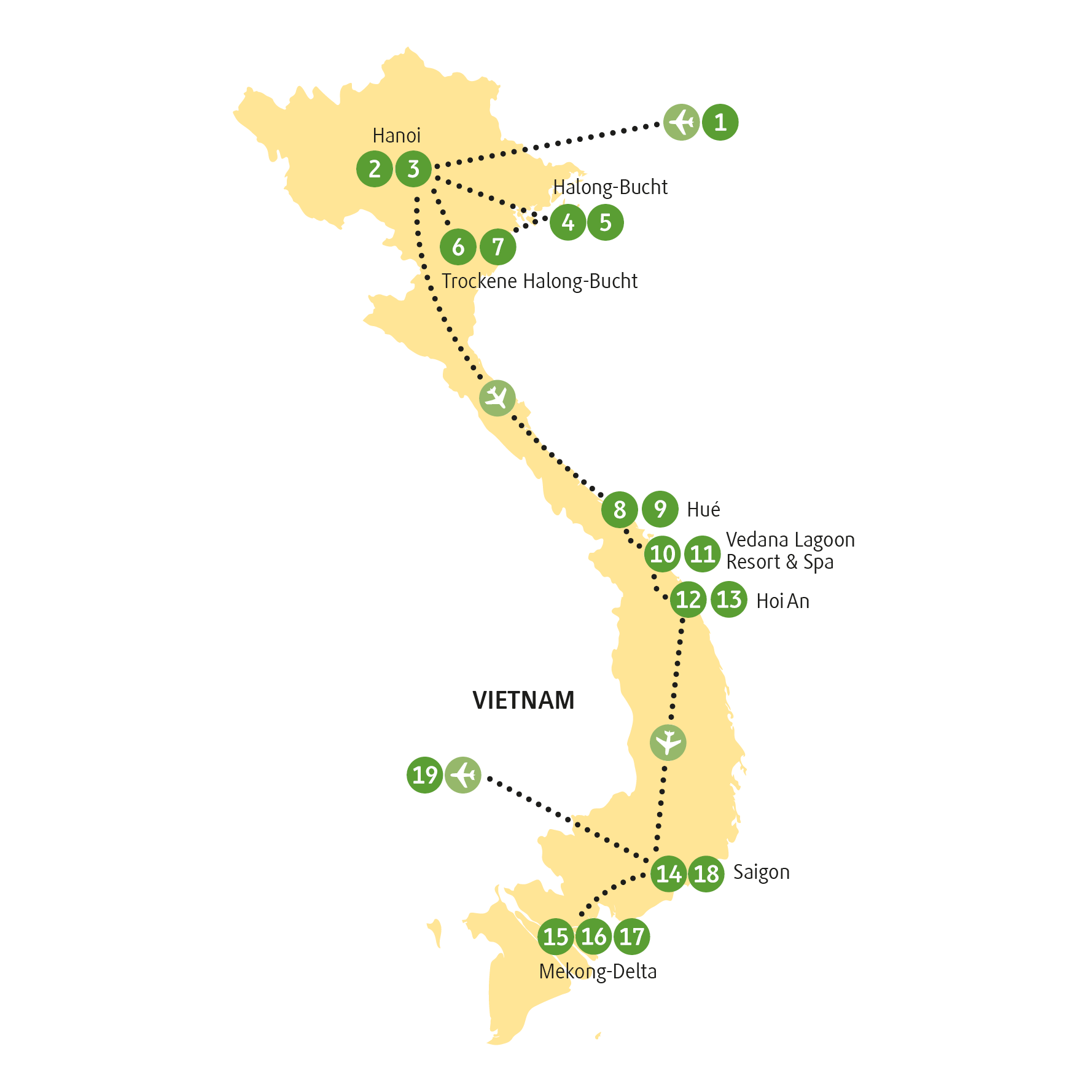 • Linienflug mit Vietnam Airlines nach Hanoi und zurück von Saigon (Buchungsklasse N)